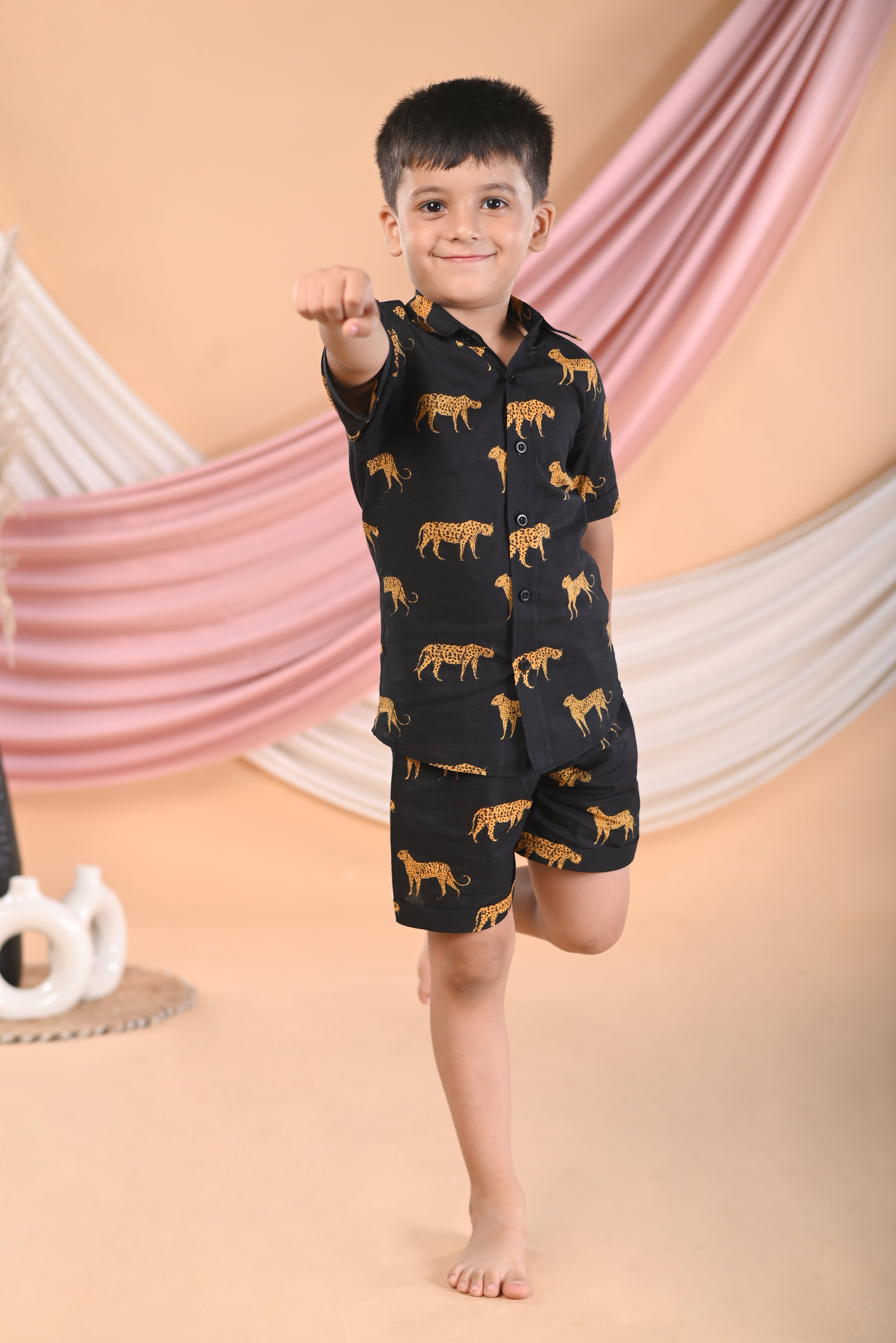 Unleash the wild side with our adorable Black Animal Print Mother Son Combo! Perfect for moms and sons who love to twin and have fun.