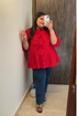Elevate your style with our stunning Red Ribbon Shirt, expertly designed with a Peplum Style and stylish sleeves that are sure to turn heads. Crafted from high-quality poplin cotton fabric, this shirt promises unparalleled comfort and durability.